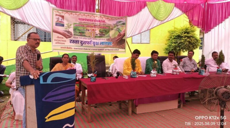 सडक अर्जुनी : आधुनिकीकरणामुळे दिवसेंदिवस पर्यावरणाचा ऱ्हास होत असल्याने नागरिकांच्या आरोग्यावार विपरीत परिणाम होत आहे. त्यामुळे वृक्ष लागवड करून त्याचे संगोपन करणे ही काळाची गरज आहे, असे प्रतिपादन जिल्हा परिषदेचे उप मुख्य कार्यकारी अधिकारी (सामान्य) फरेंद्र कुतीरकर यांनी केले.दिनांक 9 ऑगस्ट 2025 रोजी सडक अर्जुनी तालुक्यातील ग्राम पंचायात दोडके/जा येथे जिल्हा परिषद प्राथमिक शाळा जांभळी च्या आवारात महात्मा गांधी राष्ट्रीय ग्रामीण रोजगार हमी योजनेंतर्गत व लोक सहभागातून जागतिक आदिवासी दिनानिमित्त “एक पेड माँ के नाम ” कार्यक्रमाचे आयोजन करण्यात आले होते. यावेळी ते उपस्थितांना मार्गदर्शन करताना बोलत होते.सदर कार्यक्रमात जिल्हा परिषद सदस्य भूमेश्वर पटले, पंचायत समिती सभापती चेतन वळगाये, उपमुख्य कार्यकारी अधिकारी (पाणी व स्वच्छता) विजय लोंढे, गटविकास अधिकारी दिलीप खोटेले,पंचायत समिती सदस्य शालिंद्र कापगते, सरपंचा सौ. रंजिताताई कोराम, उपसरपंच विजय सोनवाने, ग्रामपंचायत अधिकारी बी. डी.लांजेवार आदी उपस्थित होते.यावेळी उपस्थित अतिथींनी जागतिक आदिवासी दिन व वृक्ष संवर्धन या विषयावर आपले विचार व्यक्त केले. आपला जिल्हा हा जरी जंगलाने व्याप्त असला तरी दिवसेंदिवस वृक्ष तोडीमुळे त्याचा परिणाम होऊ लागला आहे. त्यामुळे पर्यावरणाच्या दृष्टिकोनातून वृक्ष लागवड व संगोपन महत्वाचे असल्याचे मत व्यक्त करण्यात आले.कार्यक्रमाला शाळेतील शिक्षक, ग्रामपंचायतिचे इतर पदाधिकारी व गावातील नागरिक व इतर विभागाचे कर्मचारी उपस्थित होते.