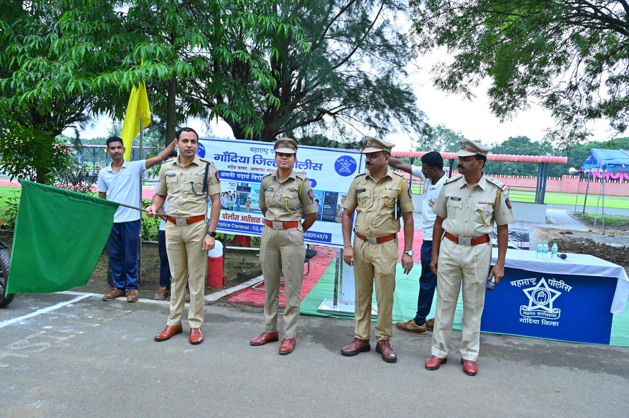 गोंदिया : जिल्हा पोलीस दलातर्फे दिनांक १३ ते १८ ऑगष्ट २०२५ या कालावधी दरम्यान अंमली पदार्थ विरोधी जनजागृती मोहीम राबविण्यात येत असुन त्या अनुषंगाने श्री गोरख भामरे, पोलीस अधीक्षक गोंदिया यांचे मार्गदर्शनाखाली दिनांक १४ ऑगस्ट २०२५ रोजी सकाळी १०.०० वा. पोलीस मुख्यालय (कारंजा) गोंदिया येथुन बाईक रॅली आयोजन करण्यात आले होते. सदर रॅली ला मा. श्री गोरख भामरे, पोलीस अधीक्षक गोंदिया यांनी हिरवी झंडी दाखवून बाईक रॅली ची सुरुवात केली . सदर अंमली पदार्थ विरोधी जनजागृती मोहीम बाईक रॅली मध्ये 300ते 350 पोलीस अधिकारी व अंमलदार यांनी सहभाग घेतला.