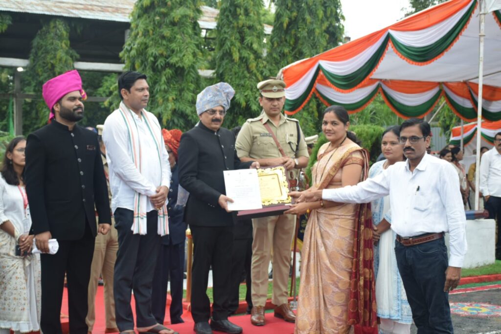 भंडारा : स्वातंत्र्यदिनाच्या मुख्य कार्यक्रमात आज पोलीस कवायत मैदानात पालकमंत्री संजय सावकारे यांच्या हस्ते विविध शासकीय कार्यालयातील उत्कृष्ट कार्य करणा-या अधिकारी ,कर्मचारी,गुणवंत खेळाडू,गुणवंत क्रीडा मार्गदर्शक ,पोलीस तसेच वन विभागातील ,शंभर दिवस कार्यालयीन सुधारणा मोहिमेत उत्कृष्ट कार्य करणारे कार्यालय प्रमुख यांना सन्मानित करण्यात आले. जिल्हा युवा पुरस्काराने नितीन धांडे यांना सन्मानित करण्यात आले. तर युवक कल्याणासाठी कार्य करणाऱ्या संस्था वर्गवारीतून ग्राम विकास संस्था , भंडारा या संस्थेला सन्मानित करण्यात आले.