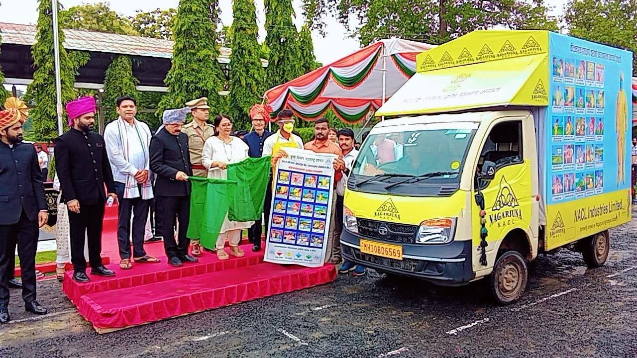 शेतकर्यांसाठी जनजागृती रथाला पालकमंत्र्यांच्या हस्ते हिरवी झेंडी दाखवून शुभारंभ