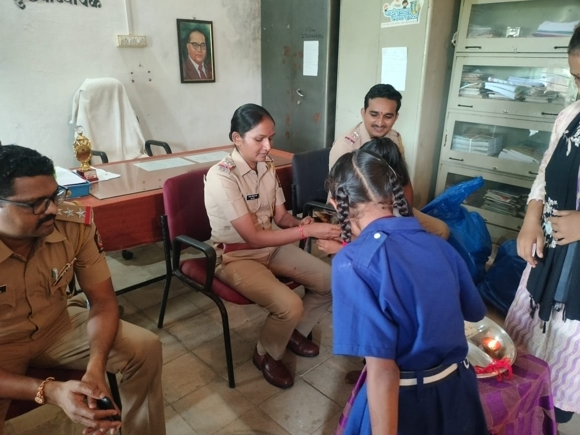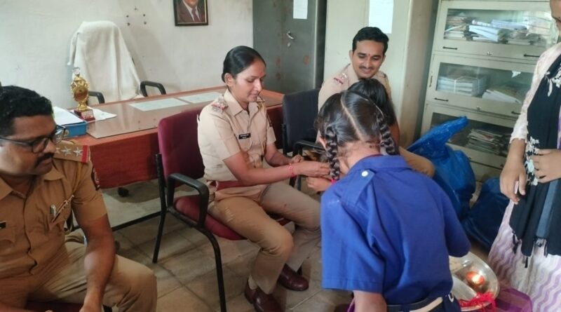 विद्यार्थ्यांनी पोलिस अधिकाऱ्यांना बांधली राखी