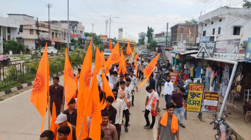 गोंदिया : दरवर्षी प्रमाणे याही वर्षी श्री कृष्ण जन्माष्टमी आणि विश्व हिंदू परिषद स्थापना दिनाच्या शुभ मुहूर्तावर, हिंदु परिषद – बजरंग दल – मातृशक्ती – दुर्गावाहिनी गोरेगाव फाउंडेशन दिनानिमित्त हिंदू परिषद – बजरंग दल – मातृशक्ती – दुर्गावाहिनी तर्फे स्थानिक दुर्गा माता मंदिरापासून भव्य शोभायात्रा काढण्यात आली. सर्वप्रथम विहिंप पद्धतीनुसार ओंकार जाप, एकता मंत्र, विजय महामंत्र, हनुमान चालिसाचे पठण करण्यात आले. दुर्गा माता, भारत माता, भगवान श्रीकृष्ण, छत्रपती शिवाजी महाराज यांच्या प्रतिमेचे पूजन करून मिरवणूक काढण्यात आली.