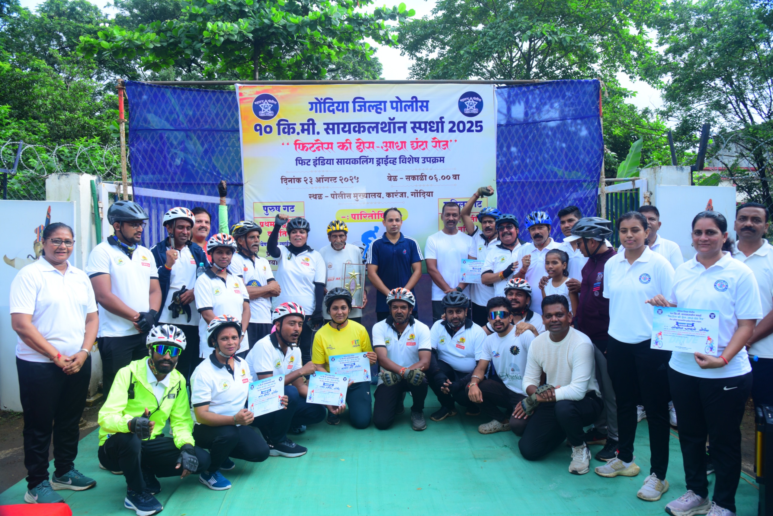 गोंदिया : जिल्हा पोलीस दलातर्फे फिट इंडिया मोहीम अंतर्गत श्री गोरख भामरे, पोलीस अधीक्षक गोंदिया यांचे मार्गदर्शनाखाली २३ ऑगस्ट रोजी सकाळी ०६ .०० वा. पोलिस मुख्यालय गोंदिया येथुन १०कि.मी. सायकल्थॉन स्पर्धेचे आयोजन करण्यात आले होते. सदर सायकल्थॉन स्पर्धेचे सुरुवात पोलीस मुख्यालय गोंदिया येथुन करून आय टी आय -फुलचूर नाका -जयस्तंभ चौक-आंबेडकर चौक -नेहरू चौक पर्यंत ५ किमी जाणे व परत नेहरू चौक-जयस्तंभ चौक -फुलचूर नाका-पोलीस मुख्यालय गोंदिया येथे समापन करण्यात आले.