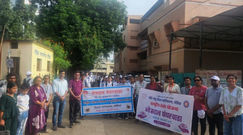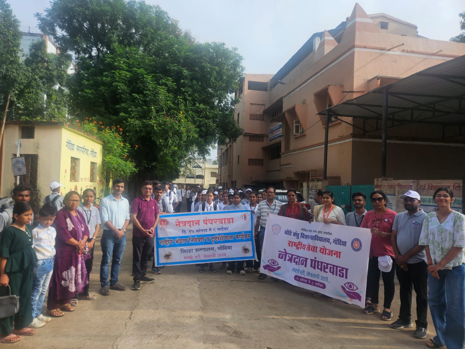 गोंदिया : २५ ऑगस्ट ते ८ सप्टेंबर या कालावधीत संपूर्ण देशभरात साजरा होणार्या नेत्रदान पंधरवड्यानिमित्त जिल्हा सामान्य रुग्णालय आणि महाविद्यालयाच्या एनएसएस युनिटच्या संयुक्त विद्यमाने एक जनजागृती कार्यक्रम आयोजित करण्यात आला. या विशेष उपक्रमात पथनाट्य, पोस्टर प्रदर्शन आणि नेत्रदान मार्गदर्शन सत्र घेण्यात आले.