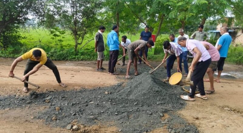 Road repair : ग्रामीणों ने भरे सड़क के गड्ढे; अनशन की चेतावनी