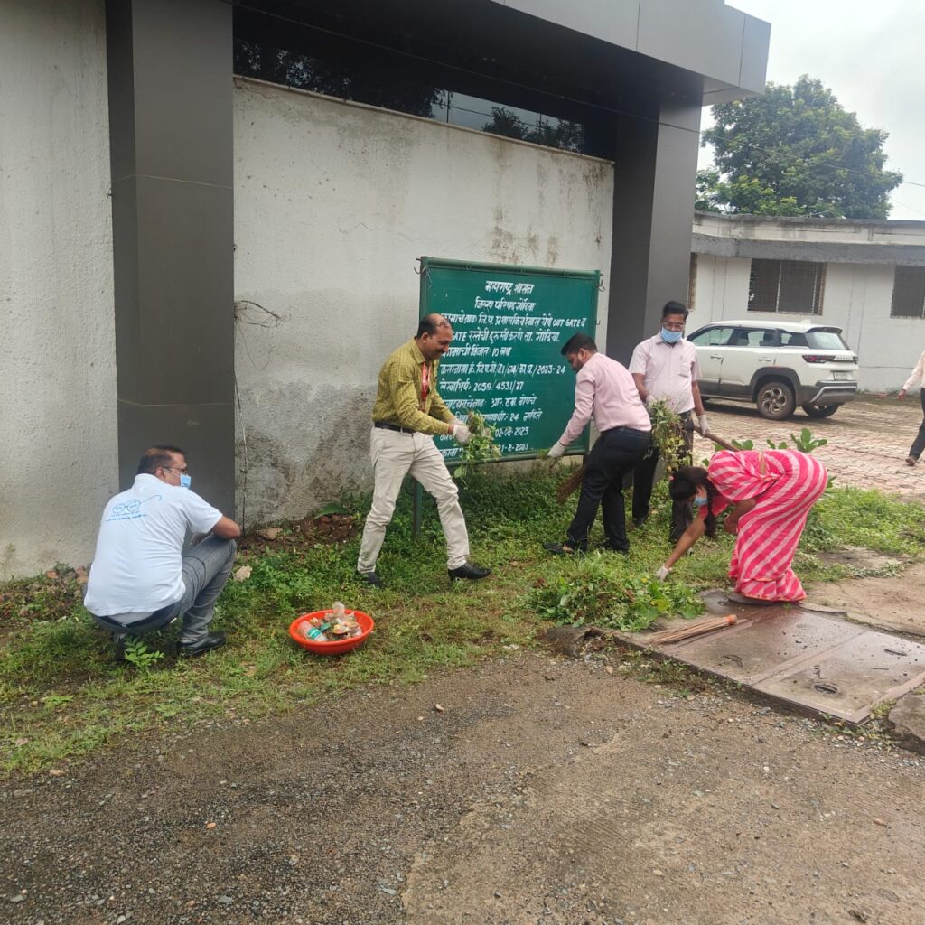 स्वच्छता ही सेवा या अभियानांतर्गत ‘महाश्रमदान – एक दिवस, एक तास, एक साथ’ हा उपक्रम राबविण्यात आला. त्याप्रसंगी मार्गदर्शन करतांना ते बोलत होते. जिल्हा परिषदचे अतिरिक्त मुख्य कार्यकारी अधिकारी डॉ. तानाजी लोखंडे, जिल्हा ग्रामीण विकास यंत्रणेच्या प्रकल्प संचालक मा. श्रीमती प्रमिला जाखलेकर, मुख्य लेखा व वित्त अधिकारी जनार्दन खोटरे, पाणी व स्वच्छता विभागाचे उपमुख्य कार्यकारी अधिकारी विजय लोंढे, पंचायत विभागाचे उपमुख्य कार्यकारी अधिकारी मधुकर वासनिक, सामान्य प्रशासन विभागाचे उपमुख्य कार्यकारी अधिकारी फरेंद्र कुतीरकर, बांधकाम विभागाचे कार्यकारी अभियंता प्रकाश ताकसांडे ग्रामीण पाणी पुरवठा विभागाचे कार्यकारी अभियंता राकेश चांदेवार यावेळी उपस्थित होते. कार्यक्रमाच्या सुरवातीला माहिती, शिक्षण व संवाद तज्ञ अतुल गजभिये यांनी उपस्थितांना स्वच्छतेची शपथ दिली. दरम्यान जिल्हा परिषदेतील 165 अधिकारी कर्मचाऱ्यांनी प्रशासकीय इमारत परिसरात श्रमदानातून स्वच्छता (swachata abhiyan) केली. श्रमदानापूर्वी सर्व विभागांना स्वच्छता करावायाच्या ठिकाणांचे वाटप करण्यात आले. कर्मचाऱ्यांनी जिल्हा परिषद सभागृहाकडील परिसर, प्रशासकीय इमारतीच्या प्रवेशद्वाराकडील परिसर, कॅन्टीनकडील भाग आणि प्रशासकीय इमारतीच्या मागचा भागात श्रमदान केले. यासोबतच जिल्हा परिषदेतील अंतर्गत परिसरातही स्वच्छता मोहीम राबविण्यात आली. याप्रसंगी पाणी व स्वच्छता विभागाचे उपमुख्य कार्यकारी अधिकारी विजय लोंढे यांनी स्वच्छता ही सेवा या उपक्रमांची माहिती दिली. ते म्हणाले, दरवर्षी होणाऱ्या या उपक्रमामुळे अनेक गावे स्वच्छ (swachata abhiyan) होवू लागली असून नागरीकांमध्ये स्वच्छता राखण्याबाबत जागृती निर्माण होवू लागली आहे. हे या अभियानाचे यश असून येत्या 2 ऑक्टोबर पर्यंत राबविण्यात येणाऱ्या विविध उपक्रमांत ग्रामपंचायतींनी नागरीकांना सहभागी करून घेण्याचे आवाहनही त्यांनी केले.
