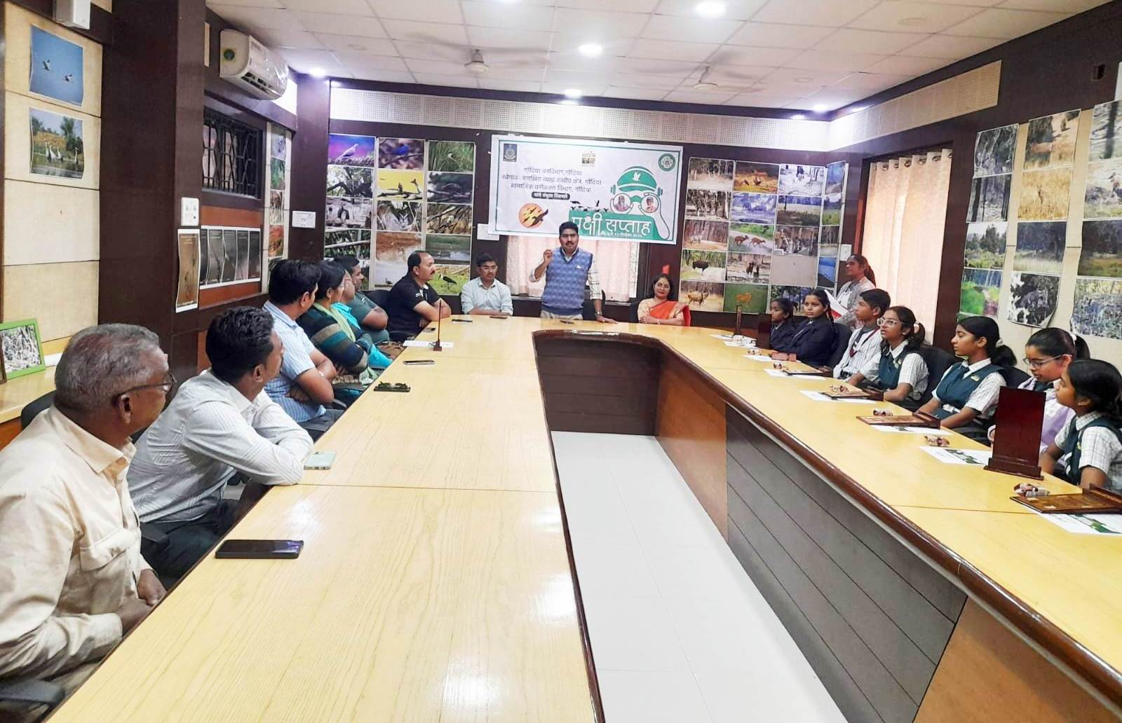 गोंदिया वन विभाग, नवेगाव-नागझिरा व्याघ्र राखीव क्षेत्र व सामाजिक वनीकरण विभाग यांच्या संयुक्त विद्यमाने दिनांक 5 ते 12 नोव्हेंबर 2025 या कालावधीत विविध उपक्रम राबवून ‘‘पक्षी सप्ताह’’ साजरा करण्यात आला. या उपक्रमात विविध शाळेतील विद्यार्थ्यांनी सहभाग घेतला होता. त्यानिमित्ताने 12 नोव्हेंबर रोजी ‘वन भवन’ येथील सभागृहात चित्रकला स्पर्धेत प्राविण्यप्राप्त विद्यार्थ्यांचा सत्कार करण्यात आला, त्यावेळी ते कार्यक्रमाच्या अध्यक्षस्थानावरुन बोलत होते.