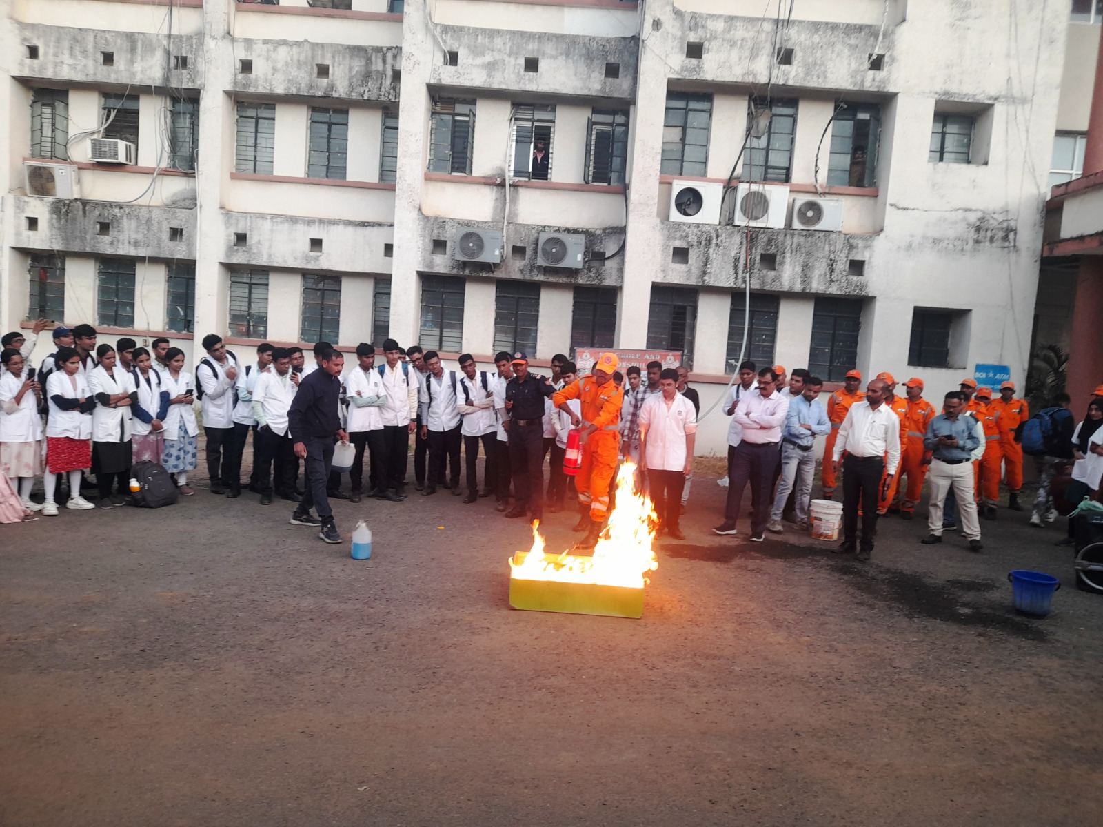 राष्ट्रीय आपत्ती प्रतिसाद दल (NDRF) नागपुरचे पोलीस निरीक्षक ब्रिजेश कुमार यादव म्हणाले, आपत्ती व्यवस्थापन म्हणजे आपत्तींचा धोका कमी करण्यासाठी, आपत्तीच्या काळात प्रभावी प्रतिसाद देण्यासाठी आणि त्यानंतरच्या नुकसानीतून सावरण्यासाठी एक पध्दतशीर प्रक्रिया आहे. ज्यात आपत्तीपूर्व नियोजन म्हणजे जोखीम मूल्यांकन व तयारी. प्रतिसाद म्हणजे बचाव व मदत आणि पुनर्प्राप्ती म्हणजे पुनर्वसन या टप्प्यांचा समावेश होतो. पुरामध्ये वाहून गेलेल्या नागरिकांना रेस्क्यू करुन बाहेर कसे काढले जाते, एखाद्या इमारतीत आग लागल्यावर आपल्याला आतमध्येपण जाता येत नाही व आतमधून बाहेरपण निघता येत नाही, अशावेळी आपण काय उपाययोजना केली पाहिजे, आपल्या घरात सिलेंडरचा स्फोट अथवा कुकरचा स्फोट झाल्यावर आपण काय उपाययोजना करावी याबाबत त्यांनी उपस्थितांना प्रात्यक्षिकेद्वारे मार्गदर्शन केले. कार्यक्रमास एम.बी.बी.एस. प्रथम वर्षाचे 130 विद्यार्थी व जिल्हाधिकारी कार्यालयातील कर्मचारी मोठ्या संख्येने उपस्थित होते. यावेळी पहिल्यांदाच जिल्हाधिकारी प्रजित नायर यांनी स्वत: जिल्हाधिकारी कार्यालयाच्या इमारतीवरुन रोपवेच्या माध्यमातून प्रात्यक्षिक करुन आपातकालीन काळात कशी मदत घेतली जाऊ शकते हे दाखविले.