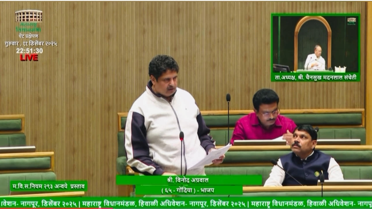 महाराष्ट्र विधानसभा के शीतकालीन सत्र (Maharashtra winter Session 2025) में शुक्रवार को गोंदिया के विधायक विनोद अग्रवाल ने सदन में एक के बाद एक मुद्दे पेश कर ध्यानाकर्षण सूचनाएं दी एवं क्षेत्र की जनता की प्रमुख मांगें सरकार के सामने रखीं. श्री अग्रवाल ने सबसे पहले धान उत्पादक किसानों के लिए प्रति हेक्टर 20 हजार रुपए बोनस देने की मांग की. उन्होंने कहा कि गोंदिया धान का कटोरा है, लेकिन किसानों को लागत भी नहीं मिल पा रही. बेमौसम वर्षा एवं अतिवृष्टि से हुए नुकसान की भरपाई देने हेतु विधायक विनोद अग्रवाल ने सरकार के प्रति आभार भी व्यक्त किए. इसके साथ ही जंगली जानवरों से फसल बचाने के लिए 100 प्रतिशत सरकारी अनुदान पर ‘खेत कंपाउंड योजना’ शुरू करने का आग्रह किया. विधायक ने गोंदिया जिले में शासकीय कृषि महाविद्यालय और शासकीय अभियांत्रिकी महाविद्यालय शुरू करने तथा बेरोजगारी रोकने के लिए गड़चिरौली की तर्ज पर बड़े इस्पात कारखाने लगाने की मांग रखी.