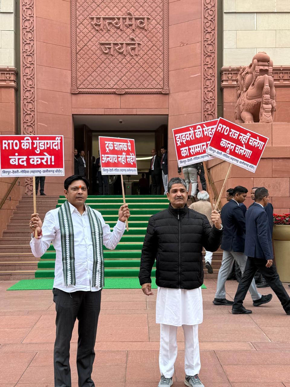 चेक पोस्टवरील वसुलीला घेवून खा. पडोळे यांचे संसद परिसरात आंदोलन; ट्रक चालकांवरील अन्यायाविरोधात आवाज बुलंद
