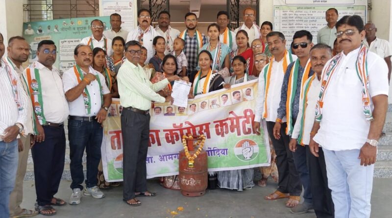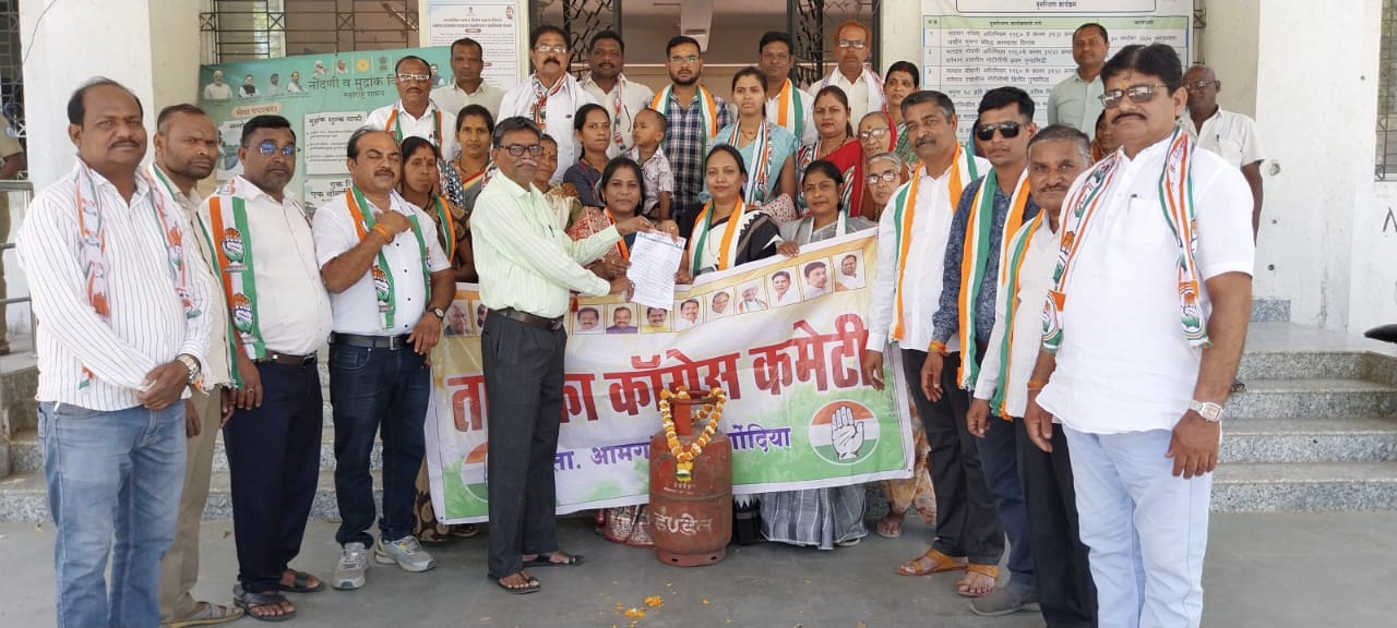 तसेच महागाईवर नियंत्रण ठेवण्यासाठी सरकारने प्रभावी पावले उचलावीत, अशी मागणीही यावेळी करण्यात आली. यावेळी शहर तालुकाध्यक्ष देवकांत बहेकार, किसान काँग्रेसचे जिल्हा उपाध्यक्ष दिलीप टेंभरे, ओबीसी विभागाचे जिल्हा सचिव राधाकिसन चुटे, अनुसूचित जातीचे तालुका उपाध्यक्ष पिंकेस शेंडे, कृषी उत्पन्न बाजार समितीचे संचालक महेश उके, पर्यावरण विभागाचे जिल्हा उपाध्यक्ष अभय ढेंगे, आमगाव देवरी विधानसभा युवक काँग्रेस उपाध्यक्ष राहुल चुटे, भूमेश्वर मेंढे, पंचायत समिती सदस्य रेखा फुंडे धनलाल पारधी, राजेश्वर मच्छीरके, भूमिता मच्छीरके, महेश्वरी लिल्हारे, सुनील मोटघरे, श्याम देशमुख, संतोष सतीशसहारे, प्रमिला राऊत, तेजेश्वरी मेश्राम, लक्ष्मी भुते, किरण बनसोड, शब्बीर शेख, इंदल पाथोडे, प्रल्हाद भांडारकर, उमाकांत उईके, समीर खान, चंद्रभागा पाथोडे, आशा पागोटे, दुर्गा उईके, जानषिकांता उके, राजेंद्र चुटे, अरविंद चुटे, भीमराज हत्तीमारे तसेच तालुक्यातील काँग्रेस कमिटीचे पदाधिकारी, सदस्य तसेच महिला पुरुष व कार्यकर्ते मोठ्या संख्येने उपस्थित होते.