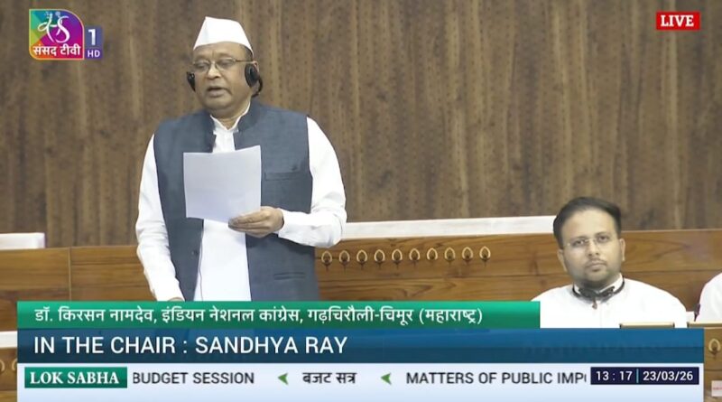 चामोर्शीतील जमीन अधिग्रहणाचा मुद्दा संसदेत गाजला; खासदार डॉ.नामदेव किरसान यांनी लावून धरला शेतकऱ्यांचा प्रश्न