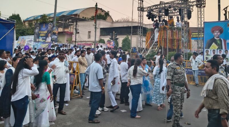 डॉ.बाबासाहेब आंबेडकर यांच्या जयंतीदिनानिमित्त स्थानिक आंबेडकर चौकातील पूर्णाकृतीला अभिवादन करण्याकरीता शहरातील विविध भागातून आंबेडकरी बांधव मिरवणूकीसह दाखल झाले. सकाळपासून रात्री उशिरापर्यत Dr. Babasaheb Ambedkar Jayanti 2026 आंबेडकर चौकासह नेहरू चौक, जयस्तंभ चौक, गुरूनानक गेट, गांधी प्रतिमा, सुभाष गार्डन, नविन प्रशासकीय इमारत या सर्व भागांना यात्रेचे स्वरूप आले होते. जिकडे-तिकडे निळी टोपी, फेटे व पांढरे पोषाख परिधान करून आंबेडकरी महिला-पुरूष पहावयास मिळाले. गोंदिया शहरातील या मुख्य मार्गाला यात्रेचे स्वरूप आल्याने या मार्गावर रात्री ९ वाजेपासून वाहतुकही ठप्प पडली होती. विशेष म्हणजे, मोठा उड्डाणपूल ते जयस्तंभ चौक तसेच जयस्तंभ चौक ते गांधी प्रतिमा या मार्गावरील एकेरी वाहतूक वळविण्यात आली होती.