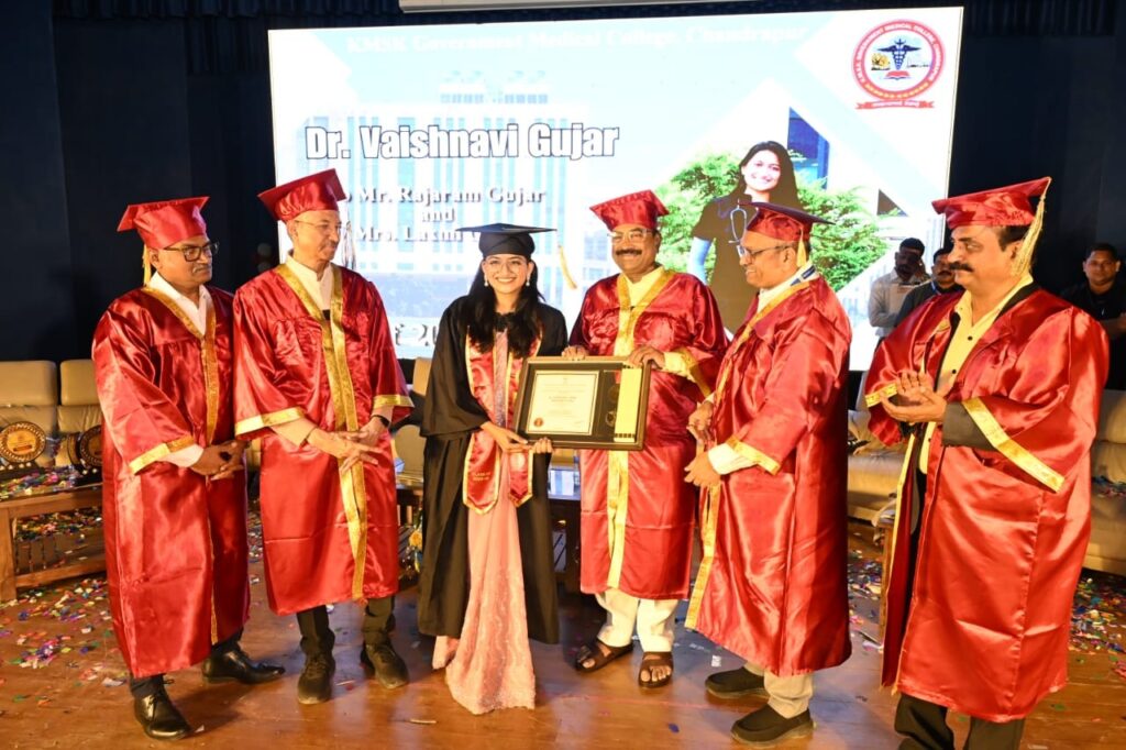 ‘चंद्रपूरचा ‘सी’ कायम ‘चॅम्पियनशिप’चाच असावा,’ असे म्हणत जिल्ह्याच्या प्रगतीबाबत त्यांनी आशावाद व्यक्त केला. या कार्यक्रमाला पद्मश्री माजी खासदार डॉ.विकास महात्मे, अधिष्ठाता डॉ.मिलिंद कांबळे, डॉ.मंगेश गुलवाडे, उपअधिष्ठाता डॉ.शरद कुचेवार यांची प्रमुख उपस्थिती होती. एकूणच, हा दीक्षांत समारंभ विद्यार्थ्यांसाठी आयुष्यभर लक्षात राहणारा क्षण ठरला असून, समाजसेवेच्या दिशेने प्रेरणा देणारा सोहळा ठरला.