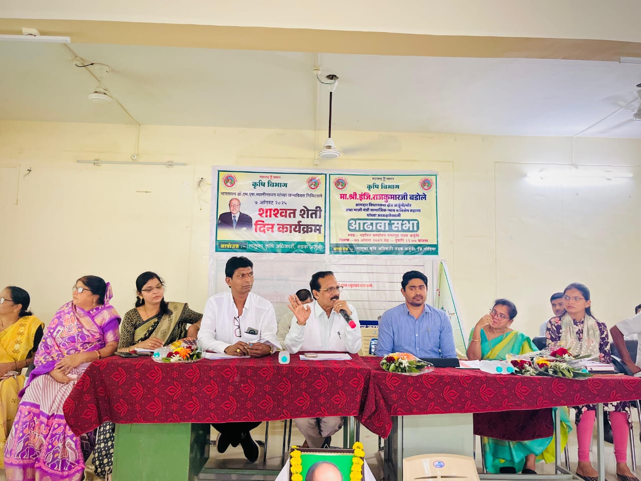 सडक अर्जुनी –भारतरत्न डॉ. एम. एस. स्वामीनाथन यांच्या जयंतीनिमित्त तहसील कार्यालय सभागृह, सडक अर्जुनी येथे शाश्वत शेती दिन आणि कृषी विभागाच्या विविध योजनांचा आढावा बैठक आमदार तथा माजी मंत्री राजकुमार बडोले यांच्या अध्यक्षतेत संपन्न झाली.या बैठकीत आमदार बडोले यांनी शाश्वत व पर्यावरणपूरक शेती पद्धतींचे महत्त्व अधोरेखित करत सांगितले की, शाश्वत शेती ही शेतकऱ्यांच्या उज्ज्वल भविष्याचा मार्ग आहे. त्यामुळे शासनाच्या कृषी योजनांची प्रभावी अंमलबजावणी करणे ही काळाची गरज आहे.आमदार बडोले यांनी उपस्थित अधिकाऱ्यांना सखोल नियोजन करीत सर्वसमावेशक कार्यपद्धती अवलंबण्याचे निर्देश दिले. शेतकऱ्यांना योग्य वेळी आणि आवश्यकतेनुसार खताचा पुरवठा करण्यात यंत्रणांनी संवेदनशीलतेने कार्य करावे असेही त्यांनी स्पष्ट केले. योजनांच्या अंमलबजावणीत ग्रामपंचायत आराखड्याला महत्त्व देत त्यात आवश्यक बाबी समाविष्ट करणे गरजेचे असल्याचे ते म्हणाले.या कार्यक्रमात शाश्वत शेती, नवे कृषी तंत्रज्ञान आणि शेतकऱ्यांसाठी लाभदायक योजनांबाबत सविस्तर माहिती देण्यात आली. त्यानंतर तालुकास्तरीय योजनांची स्थिती, अंमलबजावणीतील अडचणी, लाभार्थ्यांची संख्या आदी मुद्द्यांवर सखोल चर्चा झाली.या कार्यक्रमात पंचायत समितीचे सभापती चेतन वळगाये, जिल्हा कृषी अधिकारी निलेश कनवळे, तहसीलदार इंद्रायणी गोमासे, उपसभापती निशा काशीवार, कृ.ऊ.बा.स. चे सभापती डॉ. अविनाश काशिवार, जि.प. सदस्य कविता रंगारी, सुधा रहांगडाले, शालिंदर कापगते, शिवाजी गहाणे, वर्षा शहारे, दिपाली मेश्राम, सपना नाईक, उपविभागीय कृषी अधिकारी रुपेश मेश्राम, तालुका कृषी अधिकारी लांजेवार, वनपरिक्षेत्र अधिकारी मिथुन तरोणे तसेच ग्रामपंचायतचे सरपंच व अधिकारी उपस्थित होते.